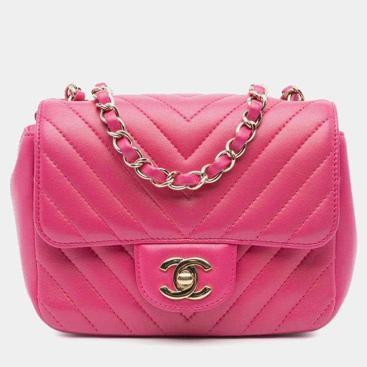 Chanel Pink Chevron Lambskin Mini Classic Single Flap Shoulder Bag