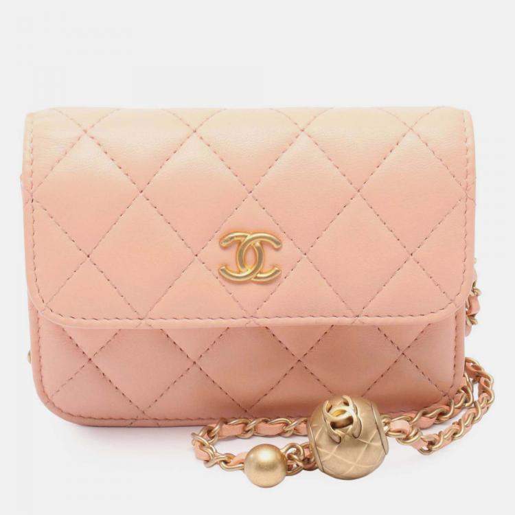 Chanel Pink Mini Lambskin Pearl Crush Clutch On Chain