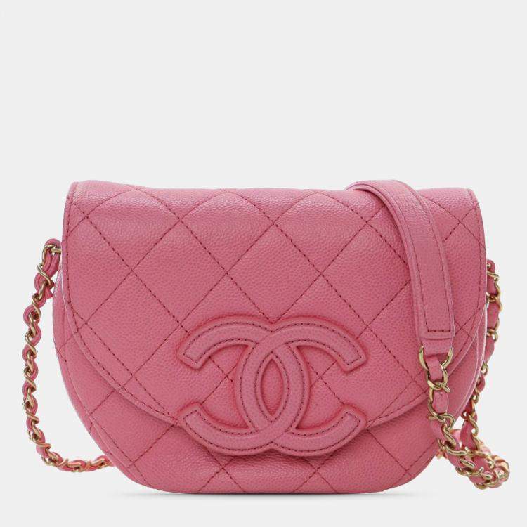 Pre Owned Chanel Pink Mini Quilted Caviar CC Messenger Flap