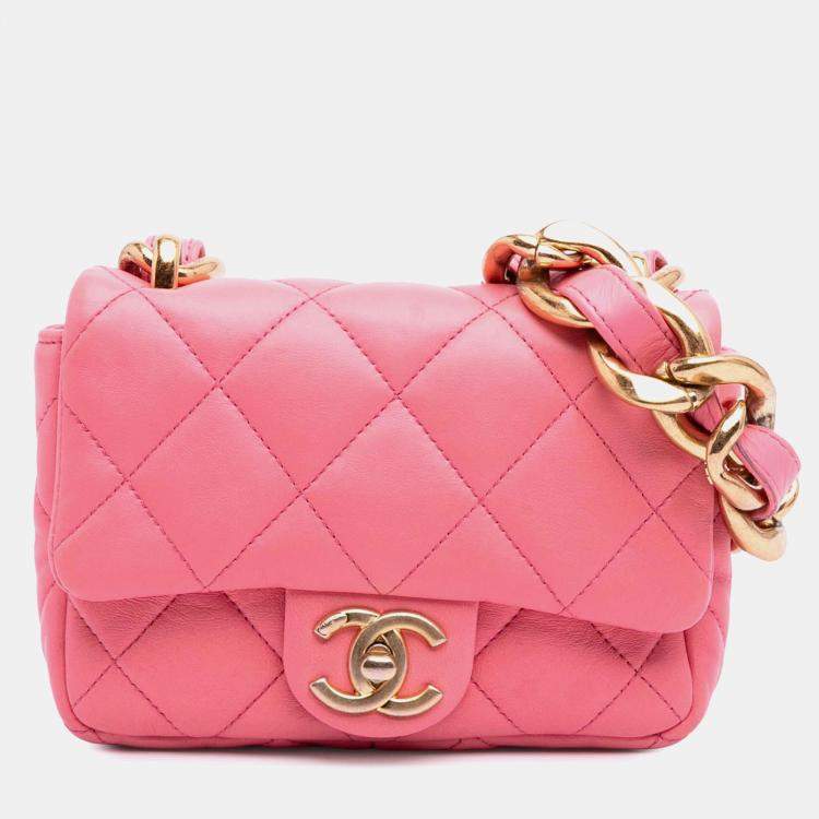 Pre Owned Chanel Pink Mini Quilted Lambskin Funky Town Flap