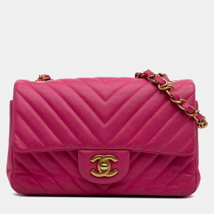 Chanel Pink Mini Rectangular Classic Chevron Lambskin Single Flap