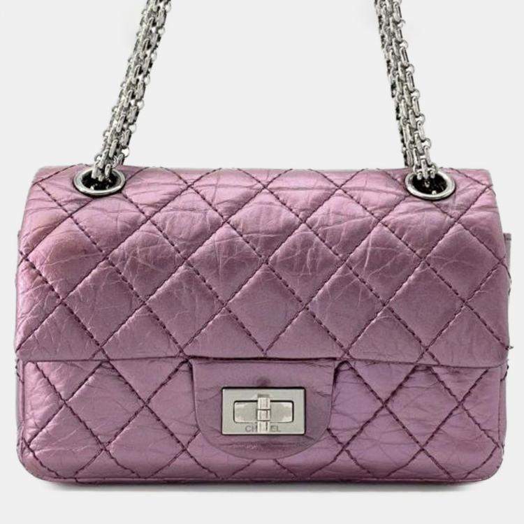 Pre Owned Chanel Pink Mini Reissue 2.55 Quilted Metallic Lambskin Double Flap