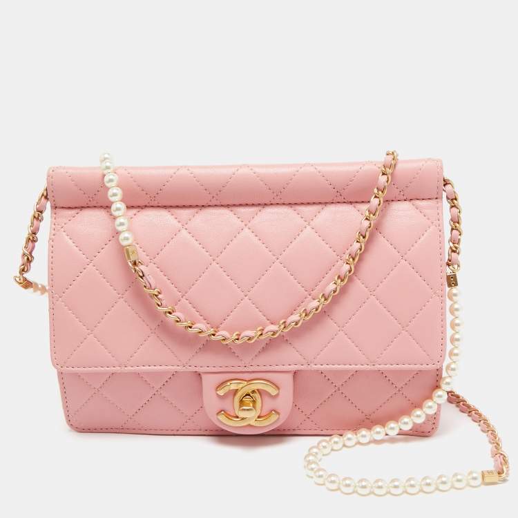 Chanel Pink Quilted Leather Pearl Chain Flap Bag