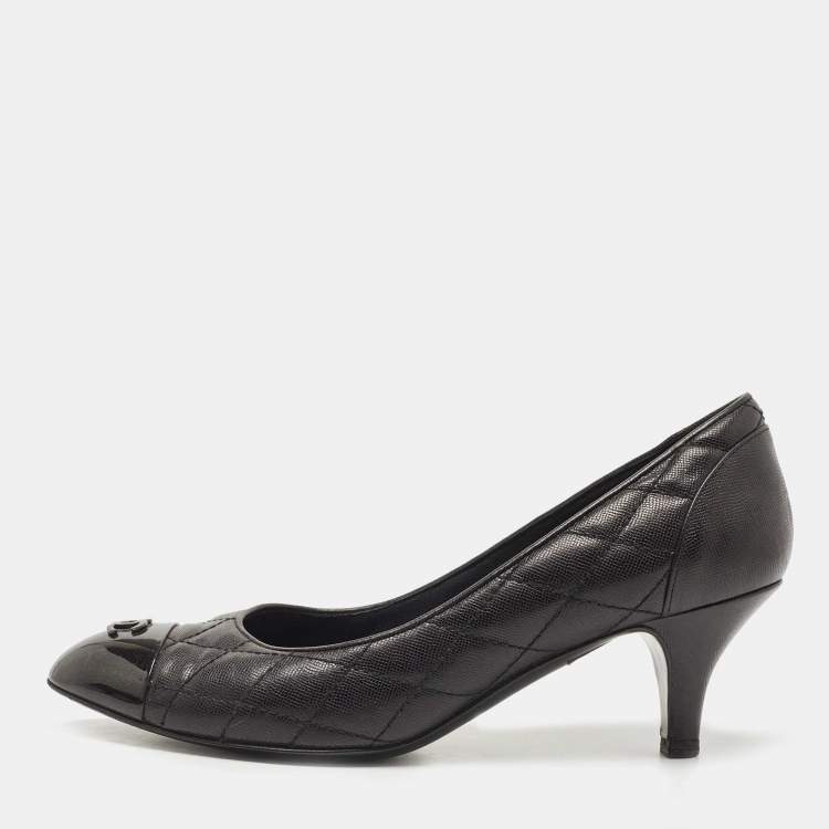 Pre Owned Chanel Black Quilted Leather and CC Cap Toe Pumps Size 37