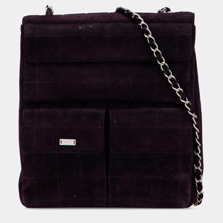 Chanel Purple Chocolate Bar Reissue Suede Multipocket Chain Flap