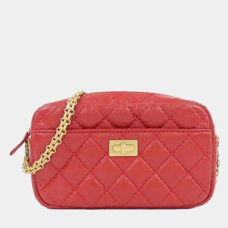 Pre Owned Chanel Quilted Red Calfskin Shoulder Bag