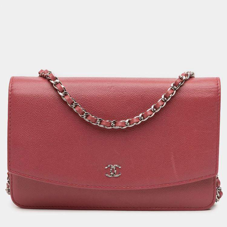 Chanel Red CC Caviar Sevruga Wallet On Chain