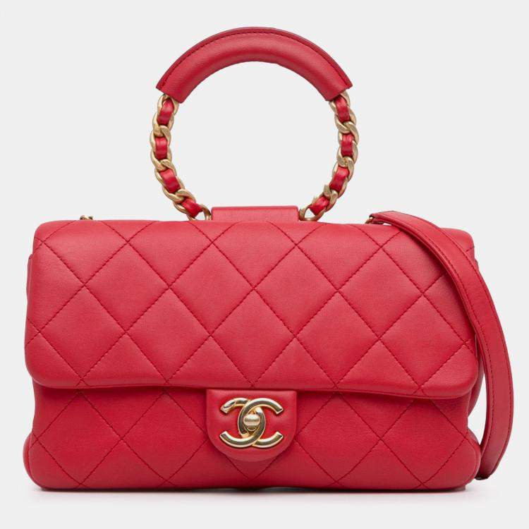 Pre Owned Chanel Red Medium Lambskin In The Loop Flap