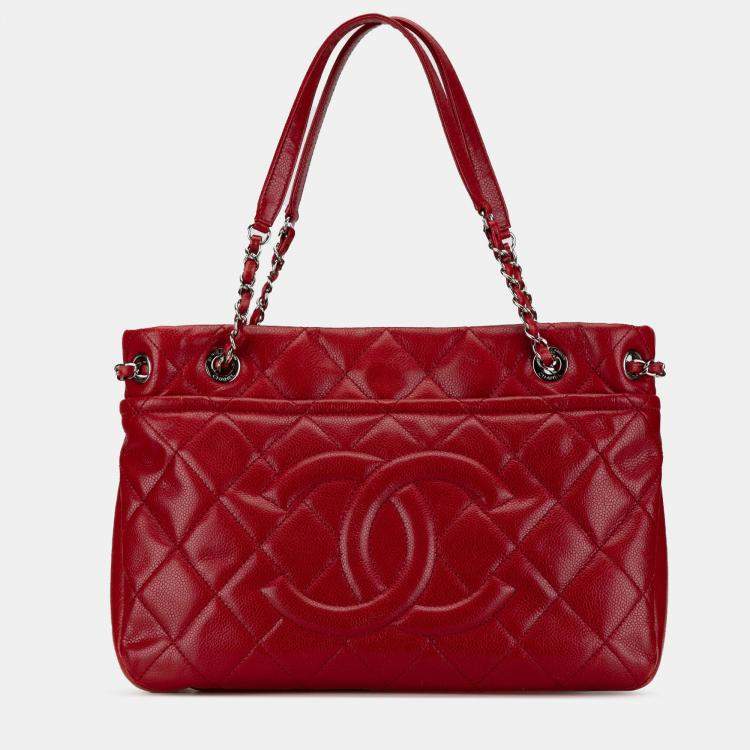 Pre Owned Chanel Red Quilted Caviar Soft Tote