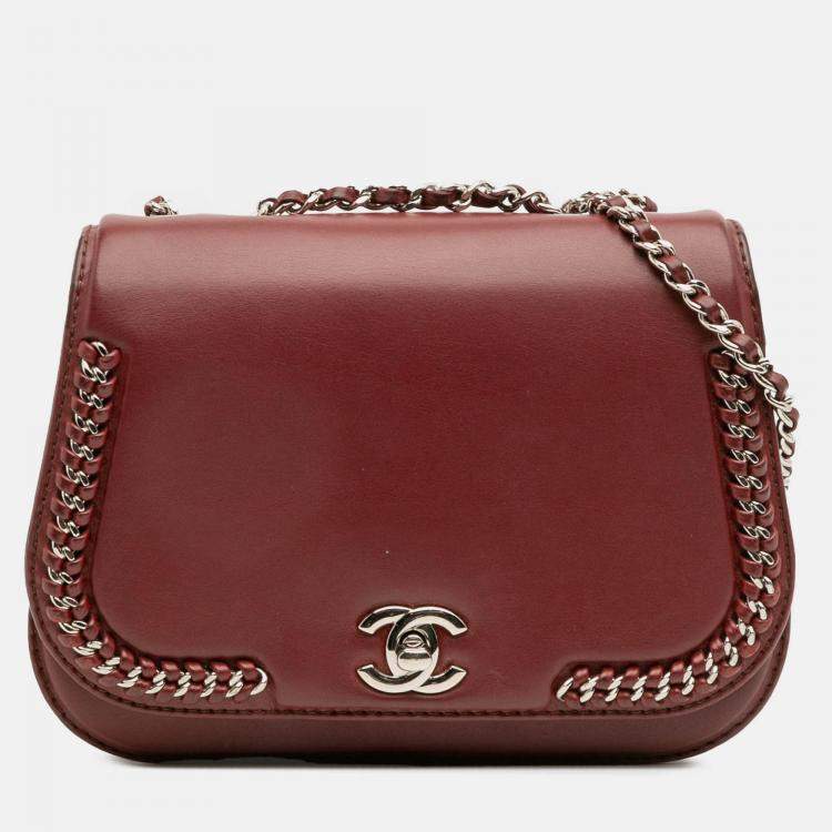 Pre Owned Chanel Red Small Calfskin Braided Chic Flap