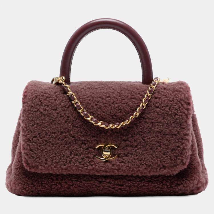 Pre Owned Chanel Red Small Shearling Coco Top Handle Bag