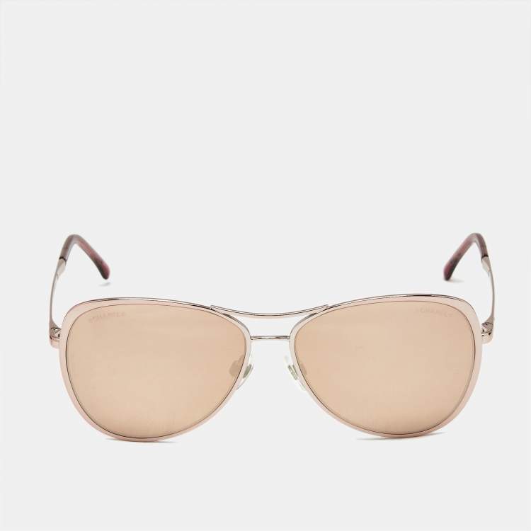 Pre Owned Chanel Rose Gold Mirrored 4223 Summer Aviators Sunglasses