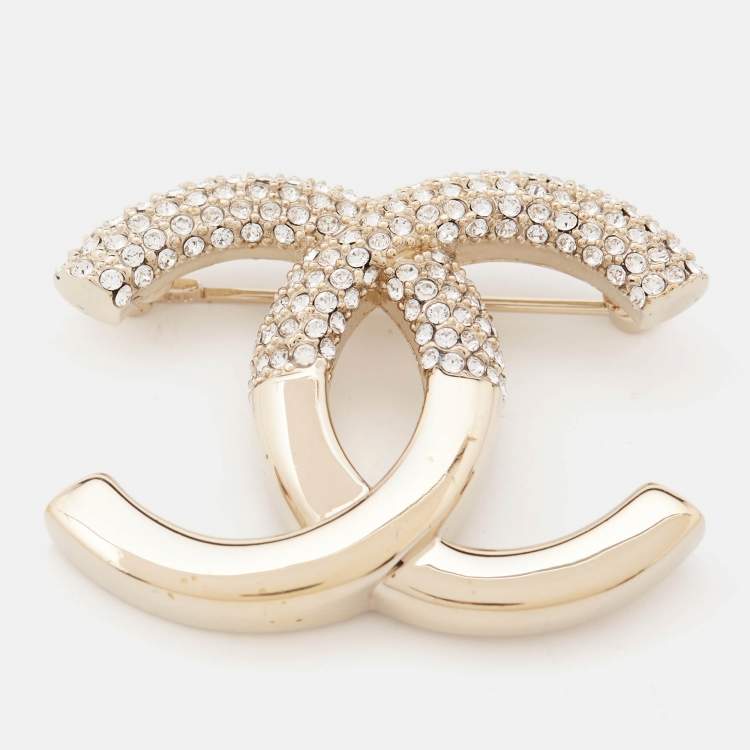 Pre Owned Chanel  Strass CC Crystals Gold Tone  Brooch
