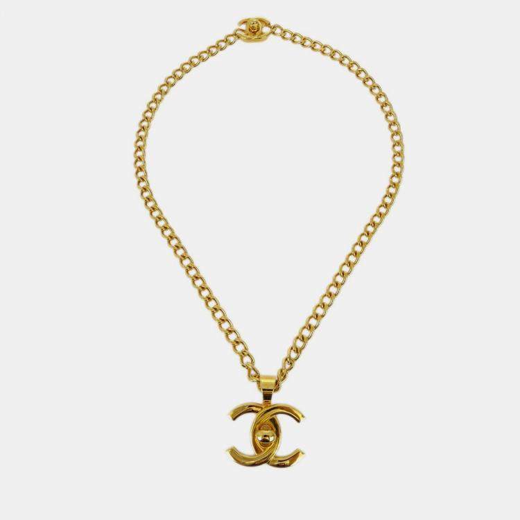 Pre Owned Chanel Turnlock Charm Gold Chain Necklace 97P