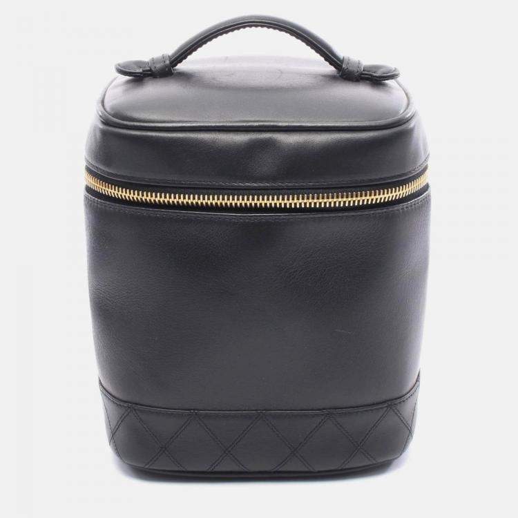 Pre Owned Chanel Vanity Black Leather Top Handle Bag