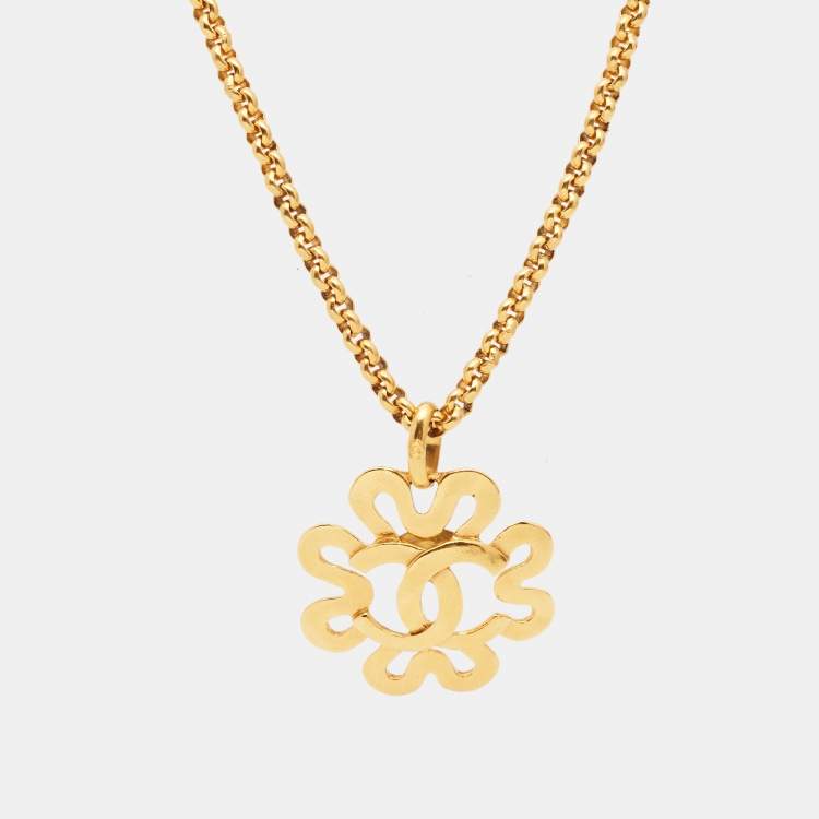 Pre Owned Chanel Vintage CC Logo Clover Gold Tone Pendant Necklace