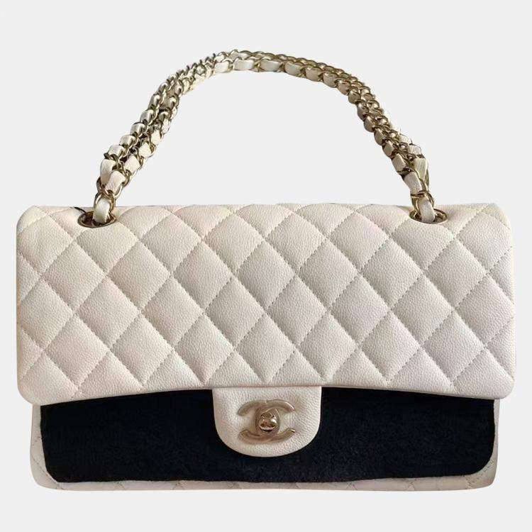 Pre Owned Chanel White Gold Button Caviar Leather Medium Bag