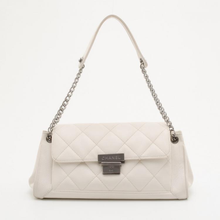 Pre Owned Chanel White Lambskin Accordion Flap Bag
