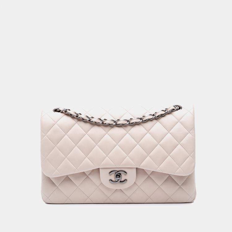Pre Owned Chanel White Lambskin Jumbo Classic Double Flap
