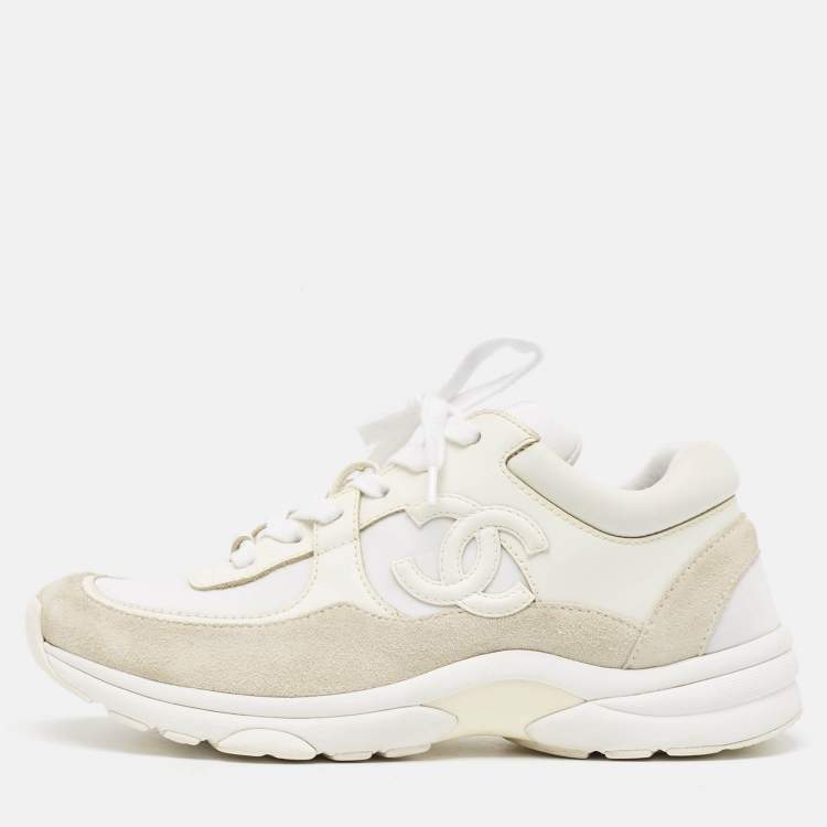 Chanel White Leather and Suede CC Low Top Sneakers Size 38