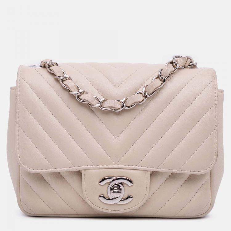 Chanel White Mini Square Classic Chevron Lambskin Single Flap