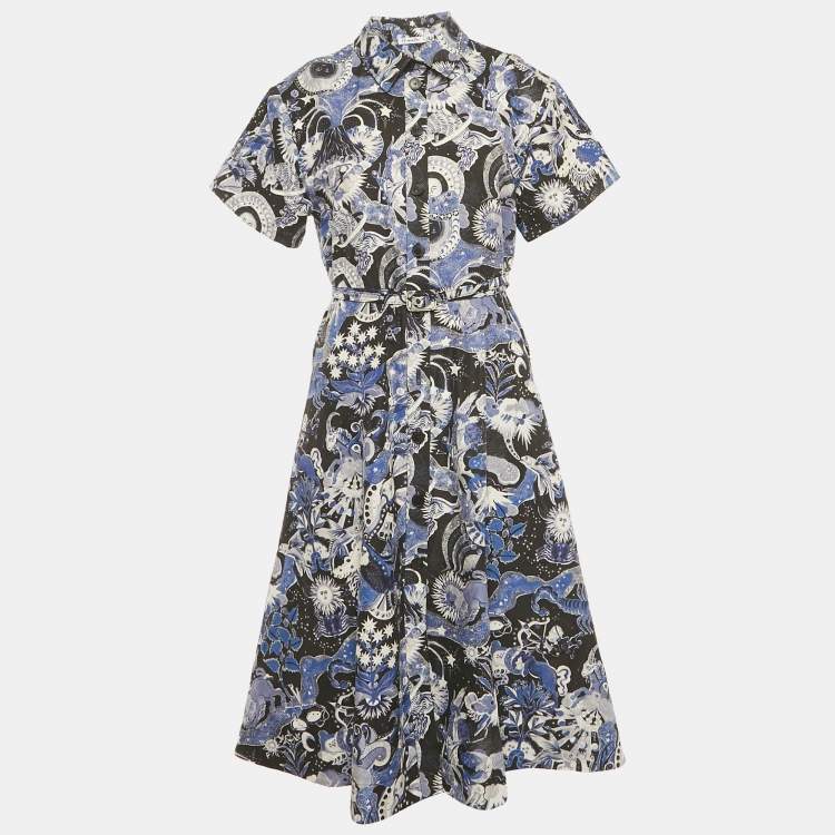 Christian Dior Navy Blue Celestial Print Cotton Belted Midi Dress M