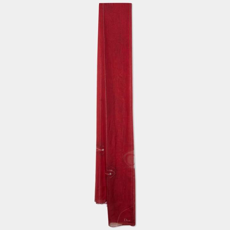 Pre Owned Christian Dior Red Buckle Printed Silk Scarf