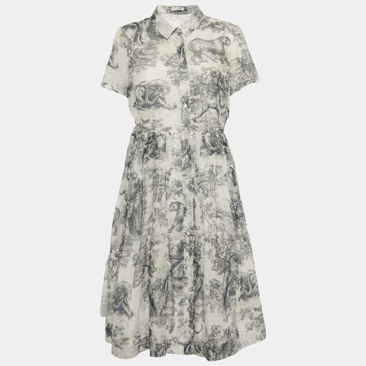 Christian Dior White Toile De Jouy Print Cotton Midi Shirt Dress L