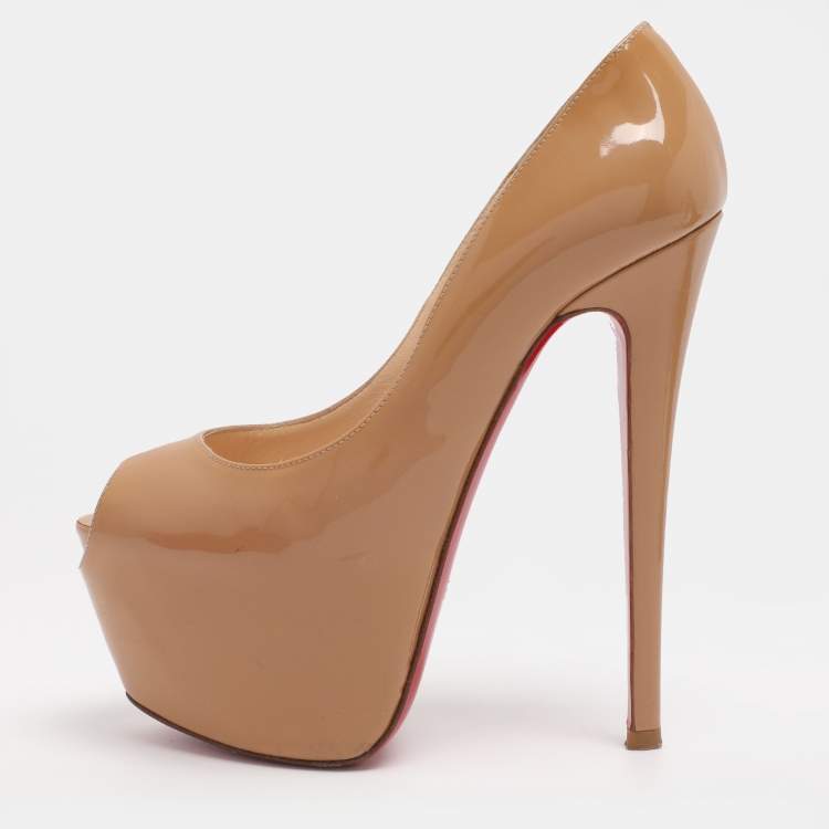Christian Louboutin Beige Patent Highness Platform Pumps Size 35