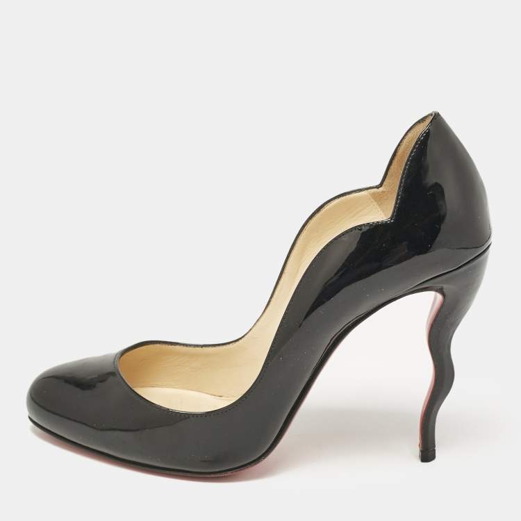 Pre Owned Christian Louboutin Black Patent Leather Wavy Dolly Pumps Size 37.5