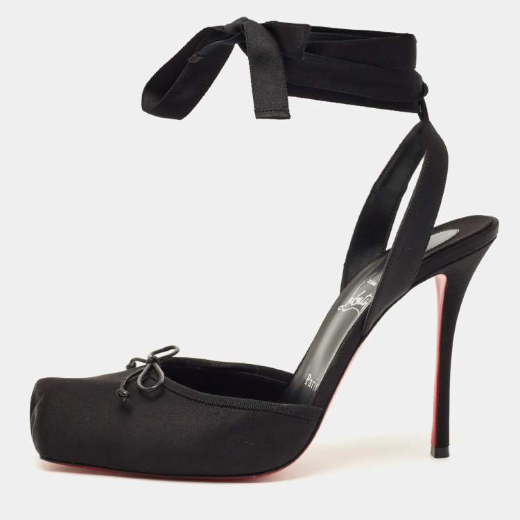 Christian Louboutin Black Satin Cassia Lace-Up Pumps Size 42
