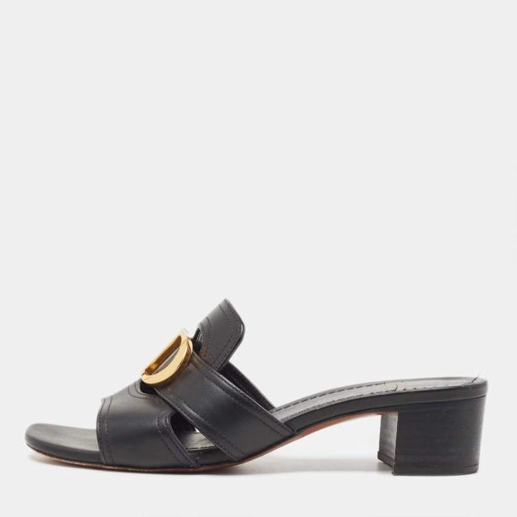 Pre Owned Dior Black Leather 30 Montaigne Slide Sandals Size 36.5
