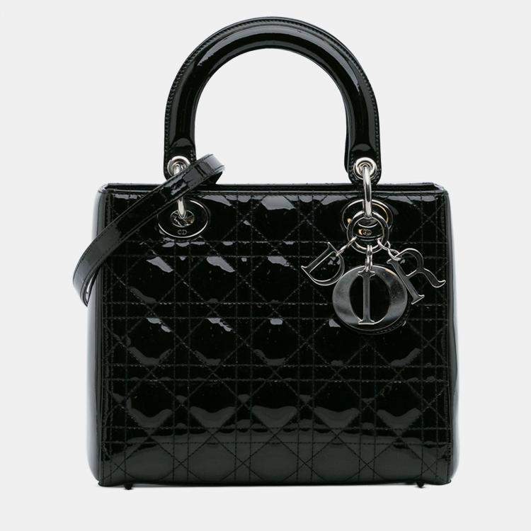 Dior Black Medium Patent Cannage Lady Dior