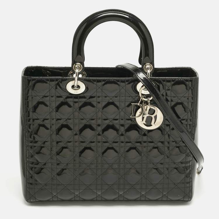 Dior Charcoal Black Cannage Patent Leather Large Lady Dior Tote