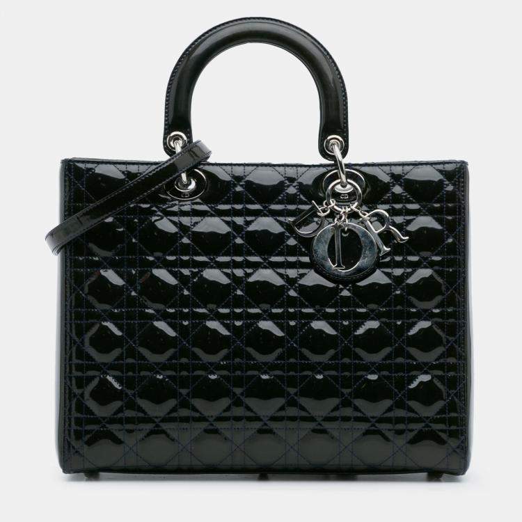 Pre Owned Dior Green Large Patent Cannage Lady Dior