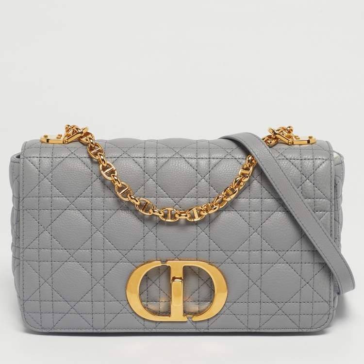 Dior Grey Cannage Leather Medium Caro Shoulder Bag