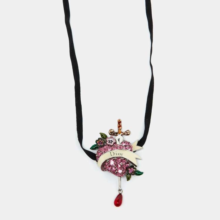 Pre Owned Dior La Fiancée du Pirate Crystal Pendant Ribbon Choker Necklace