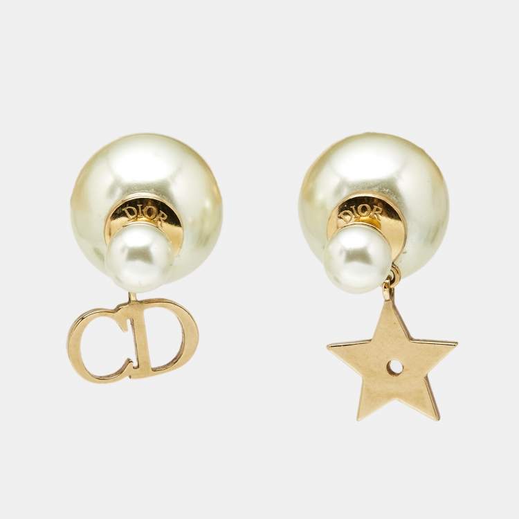 Dior Tribales Faux Pearl Gold Tone Charm Earrings