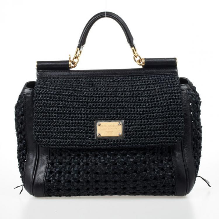 Dolce and Gabbana Black Woven Raffia Miss Sicily Top Handle
