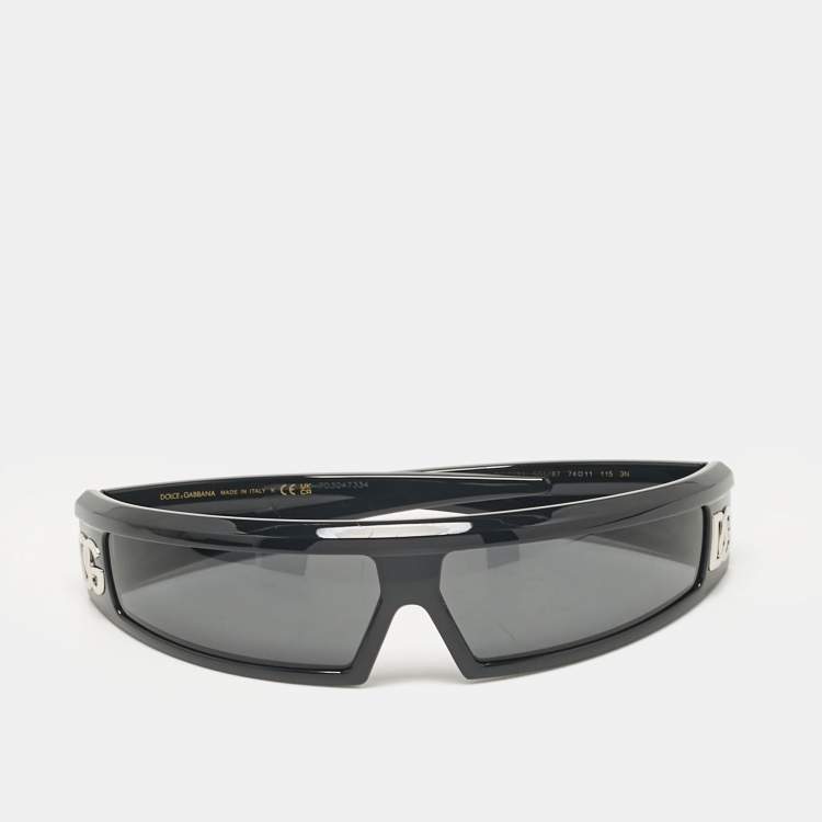 Pre Owned Dolce & Gabbana Black Acetate DG6181 Shield Sunglasses