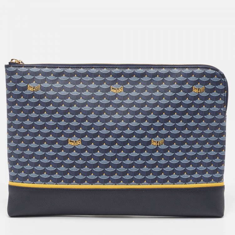 Faure Le Page Navy Blue Coated Canvas and Leather Etendard 35 Zip Pochette