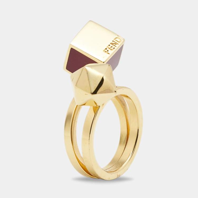 Fendi Bague Enamel Gold Tone Ring Size 55