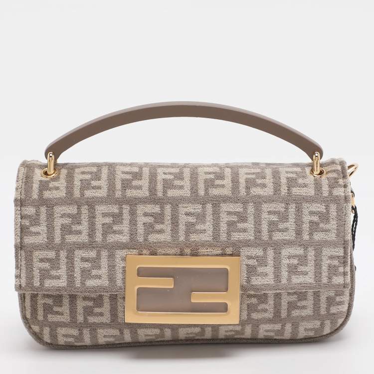 Fendi Beige Zucchino Velvet Phone Baguette Bag
