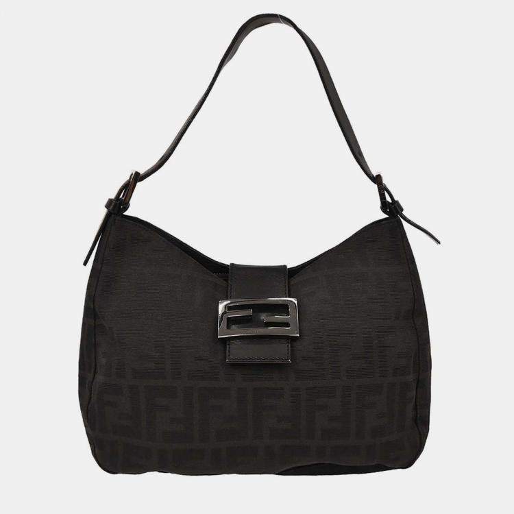Pre Owned Fendi Black Canvas Zucca Handbag