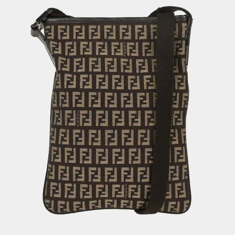 Pre Owned Fendi Brown Zucchino Shoulder Bag