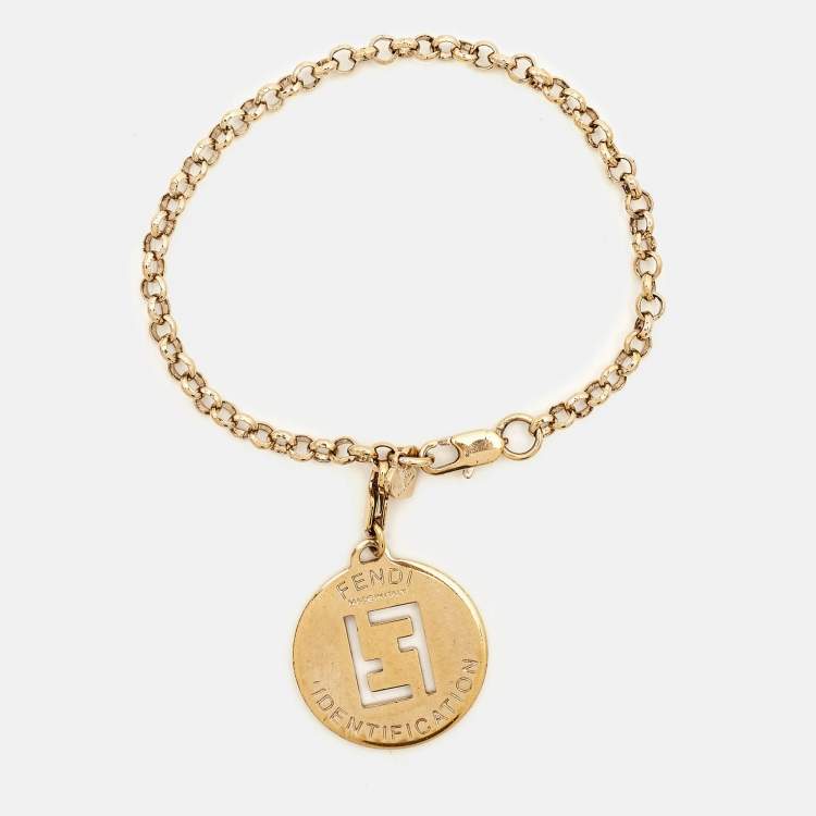 Fendi FF Identification Charm Gold Tone Bracelet