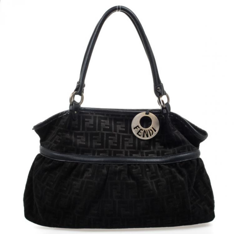 Pre Owned Fendi Large Black Suede Chef Zucca Tote