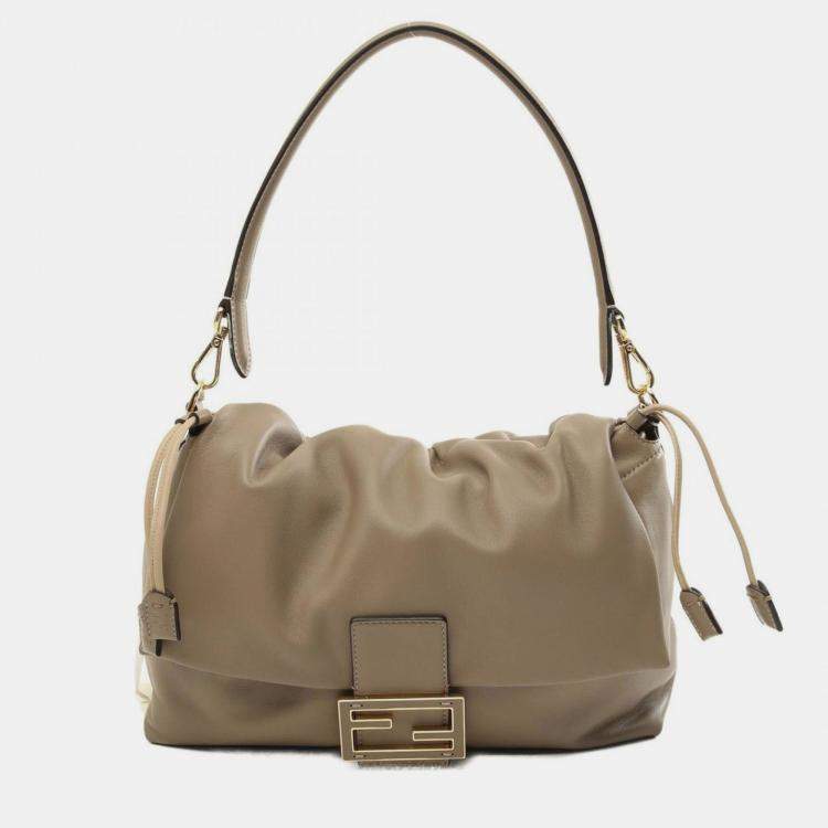 Fendi Mamma Baguette Large Shoulder Bag Leather Beige