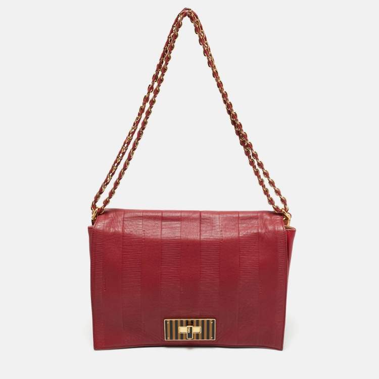 Fendi Red Pequin Embossed Leather Large Claudia Shoulder Bag