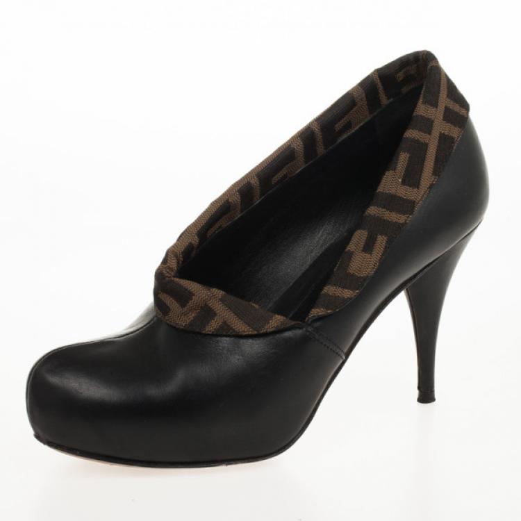 Fendi Zucca Canvas & Leather Envelope Booties Size 37